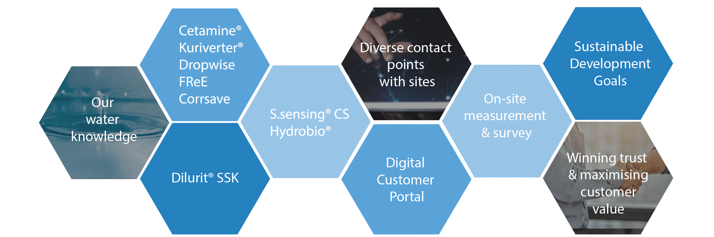 At Kurita, we are at the forefront of digitalization, pioneering innovative strategies to maximize value visibility for our customers. Our deep water knowledge, combined with our diverse contact points with sites through cutting-edge technologies, allows us to generate winning trust and deliver maximum customer value.