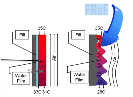 Los programas tradicionales de tratamiento del agua tienen limitaciones en cuanto a la prevención de incrustaciones, contenido de cloruros y conductividad, al aplicar la tecnología FReE y proporcionar este tratamiento adicional al agua, se nos permite superar los límites en cuanto a calcio, magnesio, alcalinidad, contenido de cloruros, pH y conductividad, esto se consigue complementando el tratamiento regular con el refuerzo de agentes dispersantes y sustancias formadoras de película manteniendo las incrustaciones bajo control y proporcionando una protección adicional contra la corrosión.