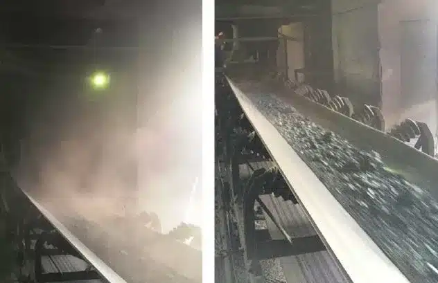 Para mi gran satisfacción, me convertí en uno de los principales colaboradores de nuestra solución, que comprende un producto espumógeno bifuncional y un equipo de pulverización de espuma que llamamos el Ferrosolf equipos de espuma (FFE). En general, los sistemas de pulverización para el control del polvo químico pueden diferenciarse a grandes rasgos entre nosotros y los sistemas de espuma. Los pulverizadores húmedos liberan una fina niebla de una solución diluida del producto a través de una serie de boquillas colocadas en el lugar objetivo, por ejemplo, encima de una cinta transportadora. Aunque se conocen desde hace décadas y su uso está muy extendido, a menudo introducen un nivel de humedad significativo (normalmente alrededor de 0,5% (5000 ppm)) en el material a granel, lo que va en detrimento del consumo de energía del proceso. Además, algunos materiales a granel, como el sinterizado, no toleran niveles de humedad tan elevados, lo que hace necesaria una solución más sofisticada. Los sistemas de espuma, en los que se suministra una espuma relativamente "seca" con la ayuda de aire comprimido y boquillas especiales, pueden lograr el mismo efecto de reducción de polvo que una unidad de pulverización húmeda, reduciendo al mismo tiempo el suministro de agua a niveles tan bajos como 0,1% (1000 ppm). Las unidades de espuma son el equipo de elección siempre que el proceso o el material no tolere mucha agua, o simplemente deba minimizarse la penalización energética introducida por el agua adicional.