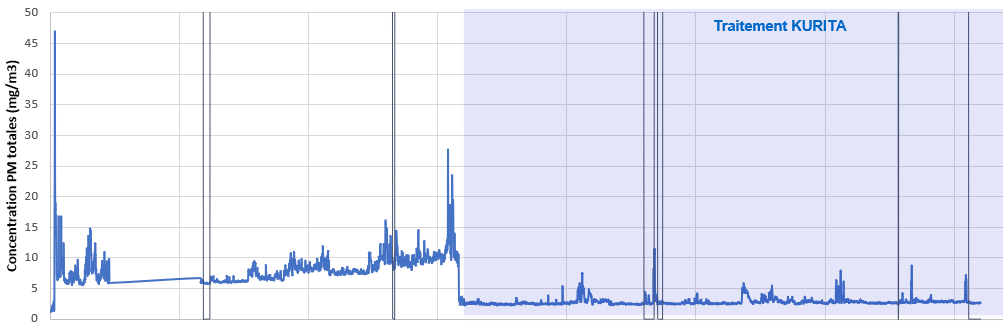 Las emisiones de polvo medidas pueden reducirse en 90% o más.